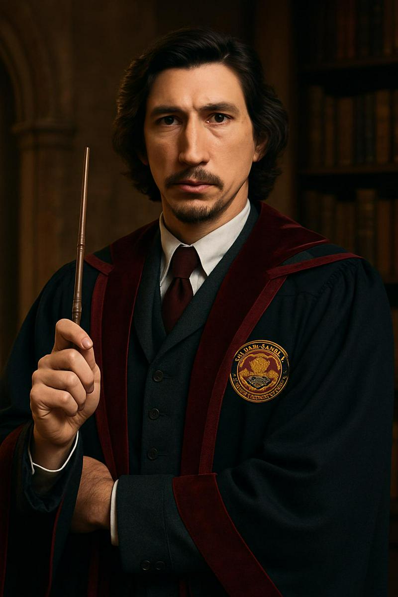 Make a image of Adam Driver as a Ilvermorny Professor in the Fantastic Beasts Films