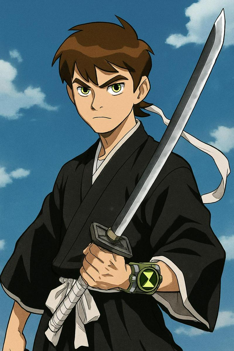 Make a image of Ben 10 as a Soul Reaper in Bleach
