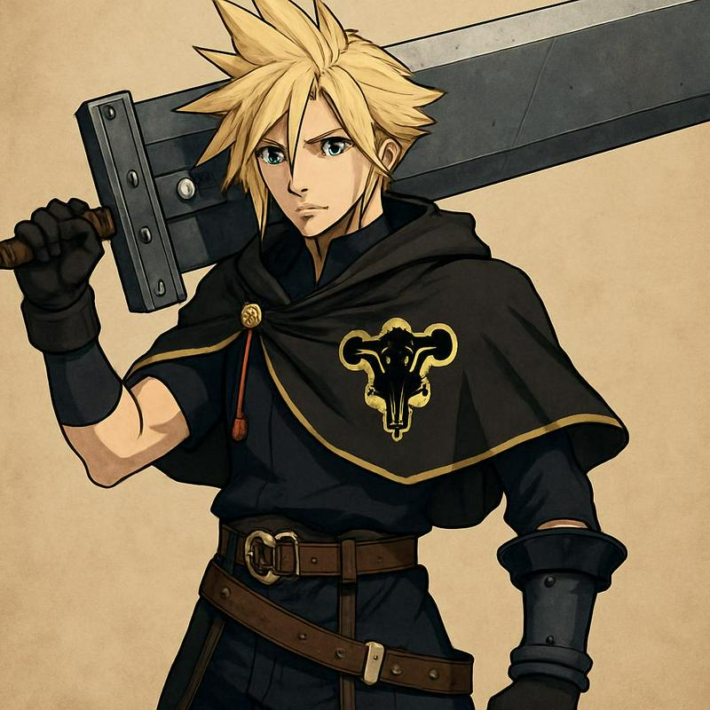 Make a image of Cloud Strife From Final Fantasy VII as a Black Bulls in Black Clover
