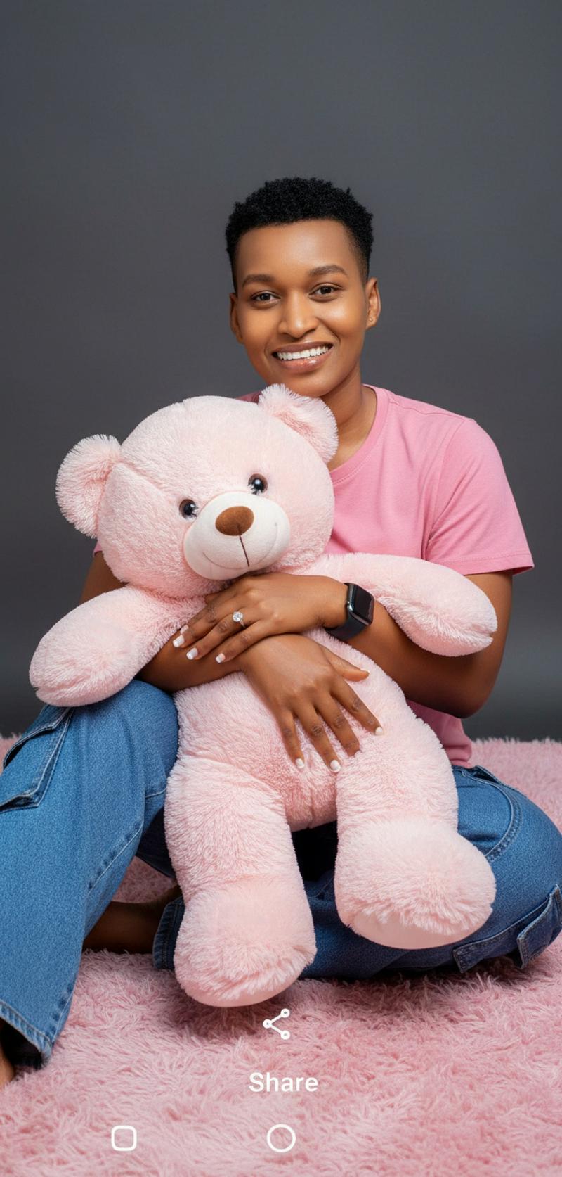Dark grey luxury studio back ground Pink carpet Light natural brown skin girl White Neal polish Black Apple watch on...