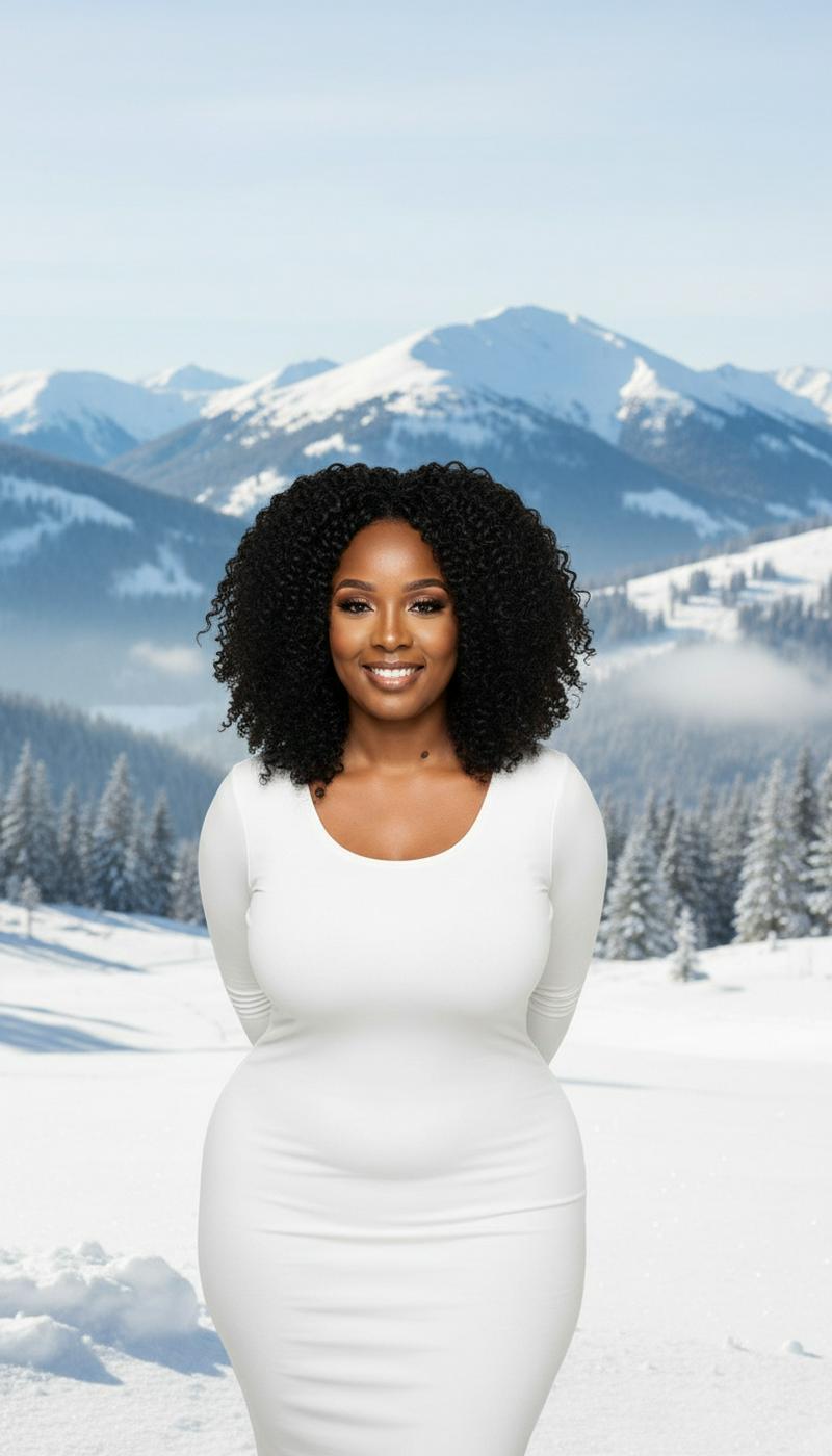 have curly hair, well done make up, curvy body, figure 8, flawless skin, image to be as in the photo,...