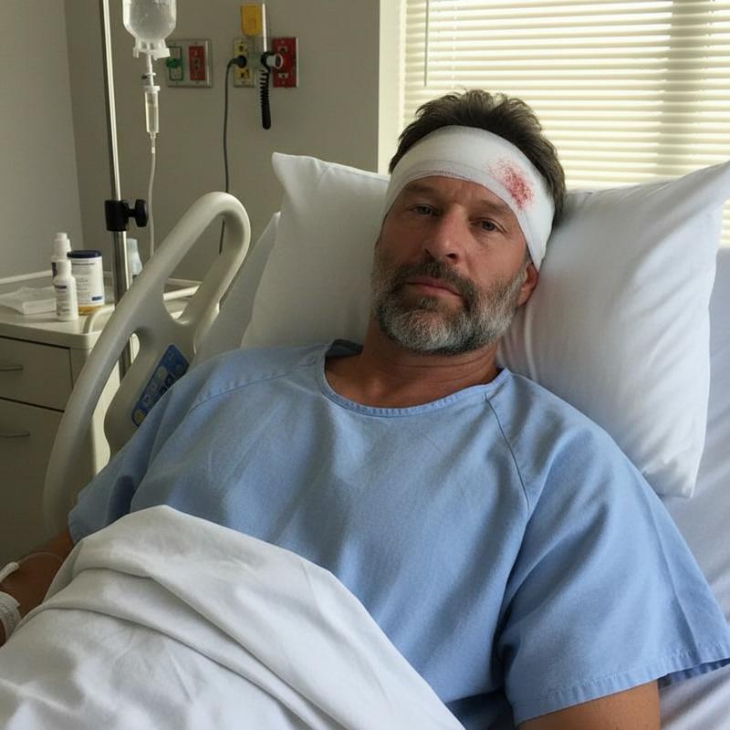 Make it look like he his in a hospital with head injury with hospital attires and make it a HD...